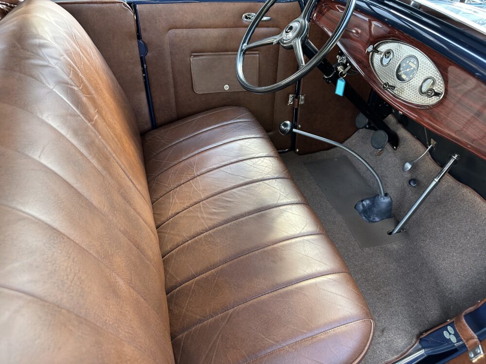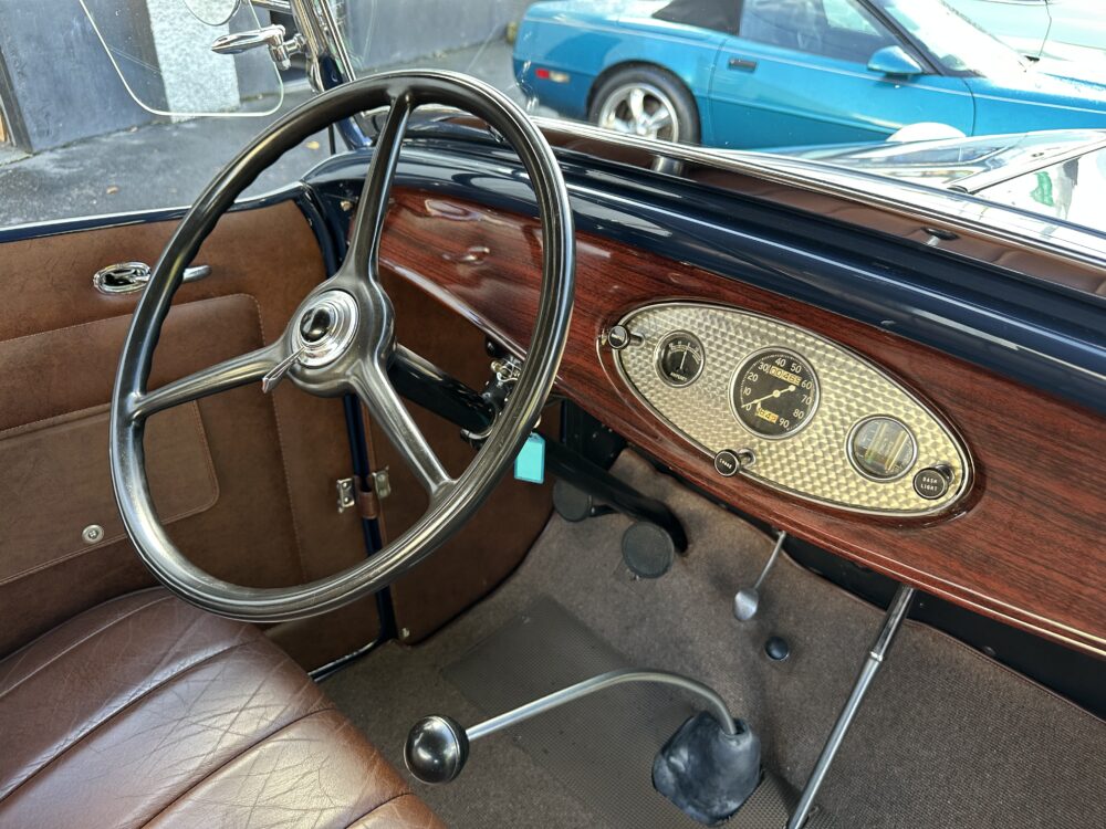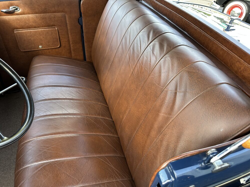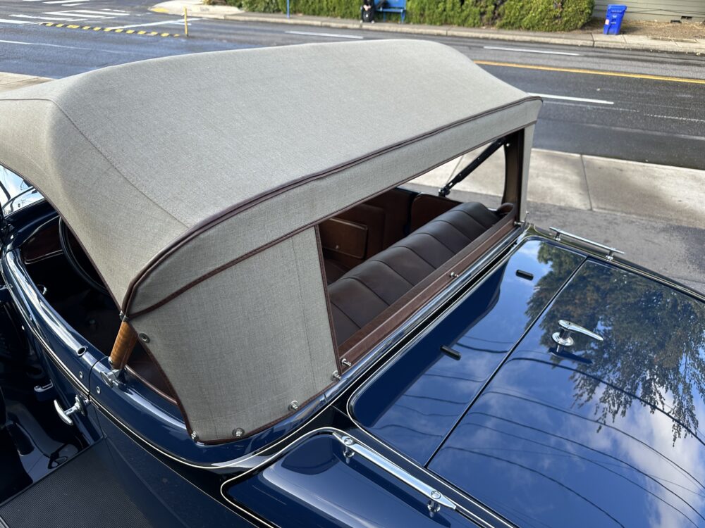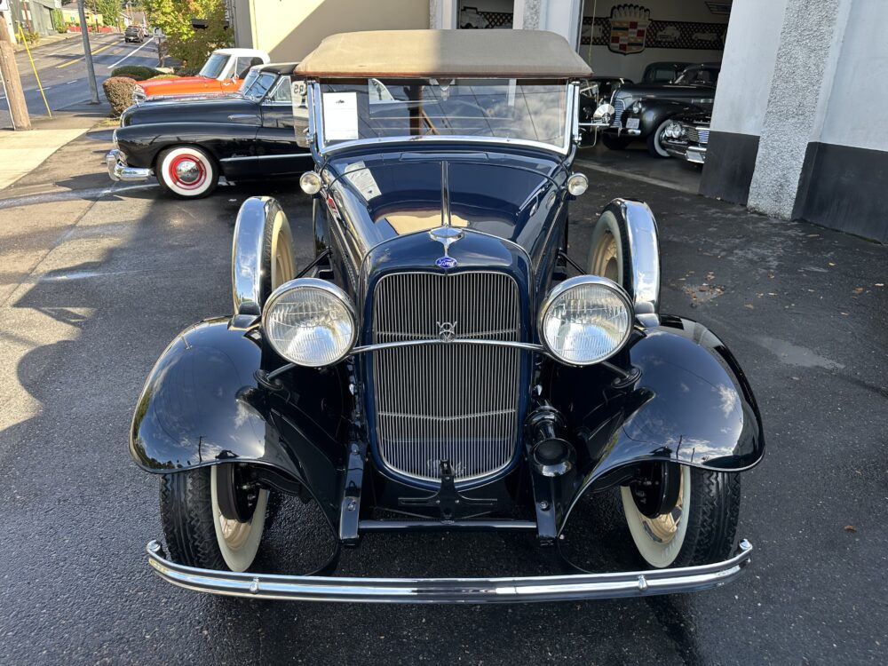 All Henry Ford steel 6 wheel Deluxe! Beautifully restored with attention to detail. Finished in the factory colors of Washington Blue, Tacoma Cream and Black. This exterior paint is nicely complemented by a beautiful tan canvas top and brown upholstery inside. Only a couple upgrades from factory stock, hydraulic brakes, a new coil and a later carburetor, making this ’32 a joy to drive. Fantastic, smooth running flathead V8 engine. Easy going clutch and 3 speed manual transmission. Truly a gorgeous car that anyone would be proud to own and show.