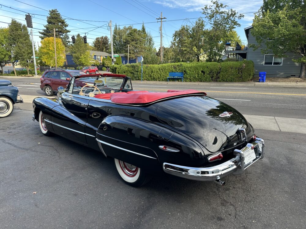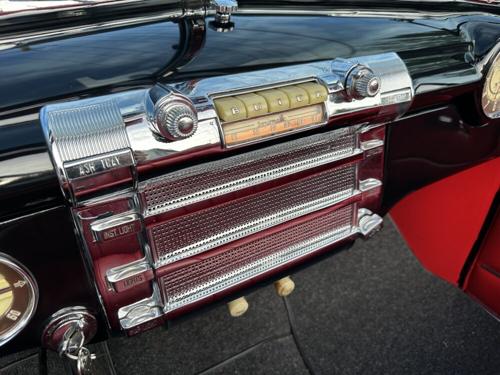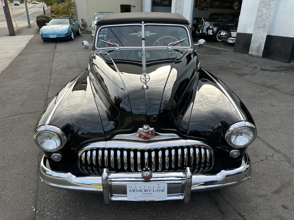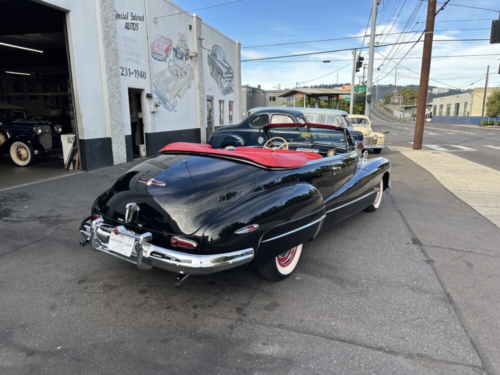Look no further, this is one of the best around! Meticulously restored cosmetically and mechanically. The “Fireball” straight 8 engine, clutch and 3 speed column shift transmission are all incredibly smooth. Gorgeous Black exterior finished complimented by the Red vinyl upholstery and Black cloth top. Dual carbs, split manifold and dual exhaust gives this Buick an awesome sound. 12 volt conversion and power top. Truly a beautiful looking and driving Buick!