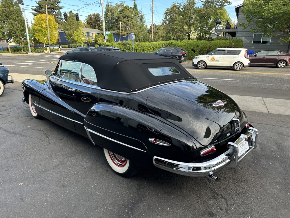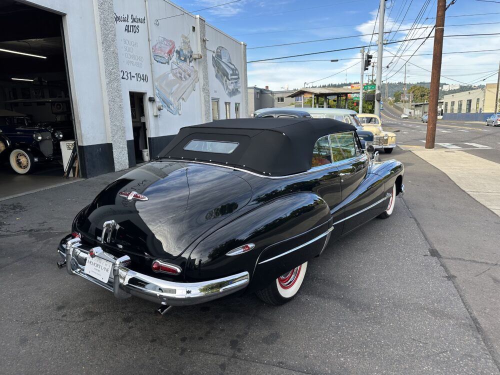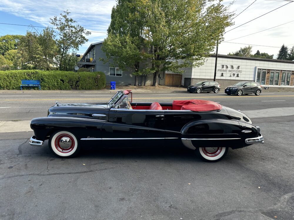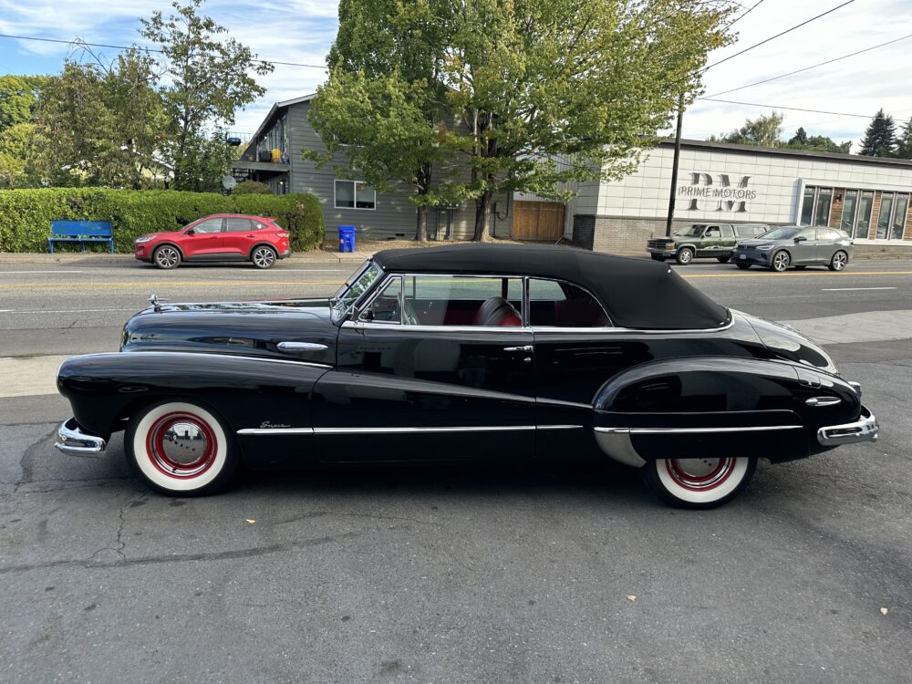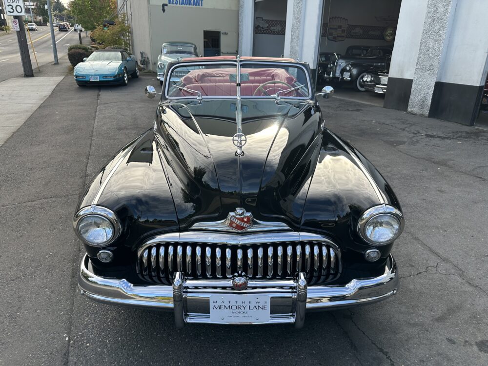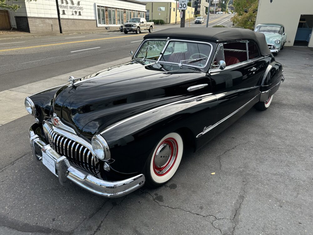 Look no further, this is one of the best around! Meticulously restored cosmetically and cosmetically. The “Fireball” overhead valve straight 8, clutch and 3 speed manual transmission are all incredibly smooth. Dual carburetor, split manifold and dual exhaust makes this Buick a pleasure to drive. Gorgeous black exterior paint is complemented by the red vinyl upholstery. Nicely finished black cloth convertible top with power actuation. 12 volt conversion. Truly a beautiful looking and driving Buick!