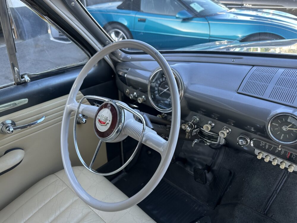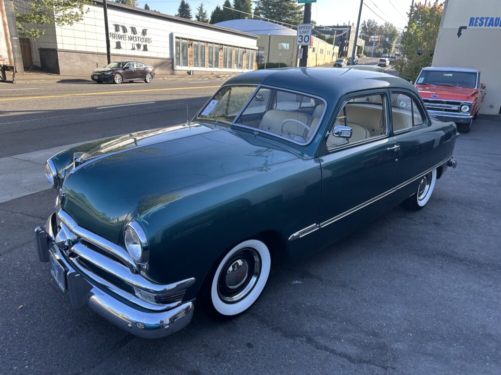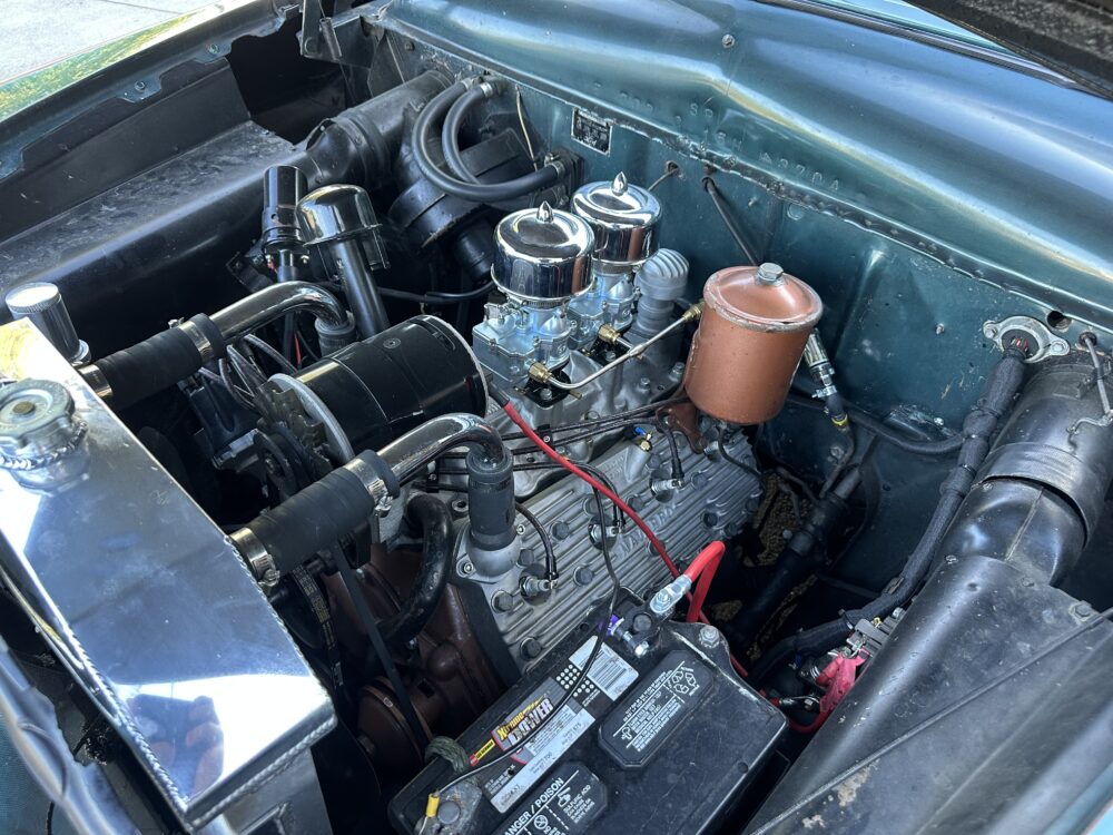 Fantastic running and driving ol’ Shoebox. New H&H flathead V8 engine under the hood! Top Loader 4 speed manual transmission with Hurst shifter. 8″ Ford rear end geared for highway use! Nicely fitted tan upholstery with green accents to complement the exterior. New analog gauges and 12 volt electrics. Aluminum radiator and dual carbs. New radial white wall tires and satin black wheels with caps. The dual exhaust has a great Flathead sound. Looking for an old school daily? This might be it!