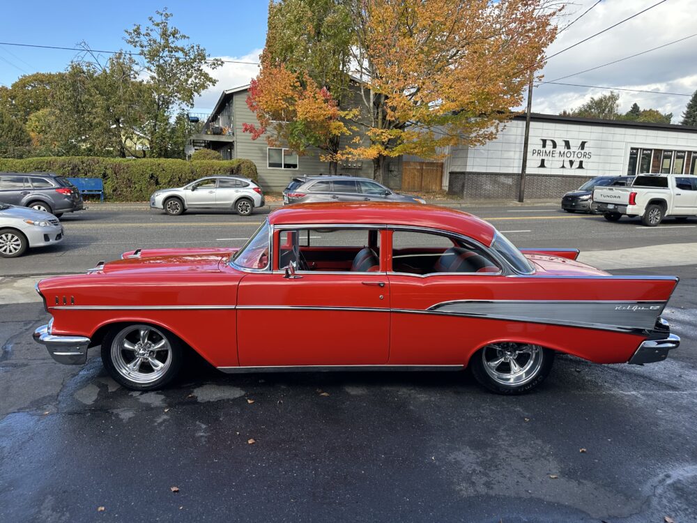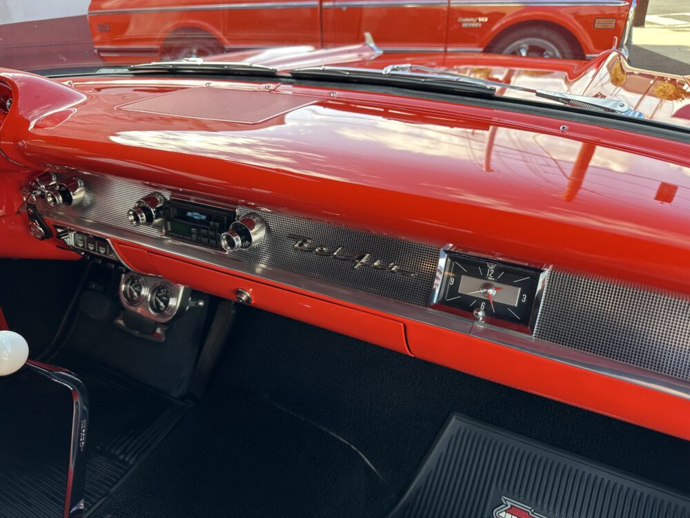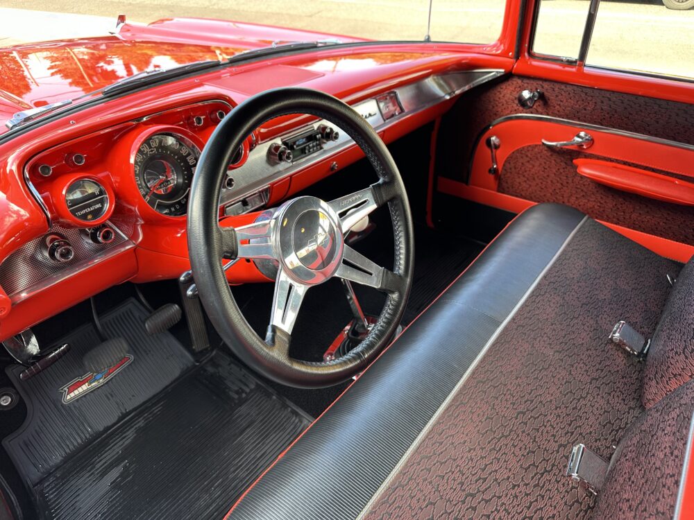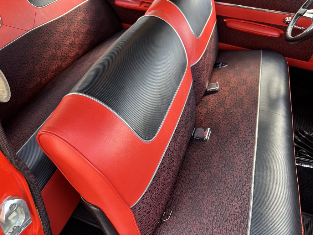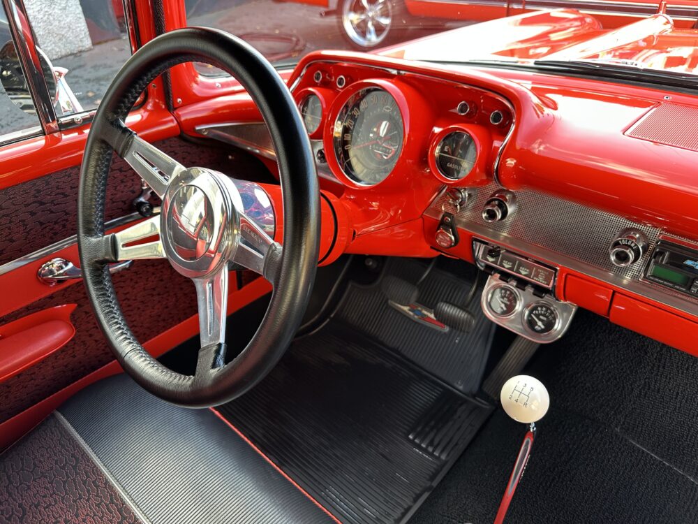 Truly one of the nicest Bel-Airs around! 800 hour restoration completed by Hulst Customs in ’94. Several upgrades done over the years since it was finished. Powered by a “Monster Mouse” 391ci stroker Chevrolet V8 engine. Tremec TKO 600RR 5 speed manual transmission. Ford 9″ rear end with 3.50 gear and Eaton Posi-Traction. Matador Red exterior finish over Black and Red upholstery inside. Power steering and power front disc brakes. Tubular A-Arm front suspension and 17″ American Racing wheels. Lots of paperwork and history included. This older restoration looks like it was finished yesterday!