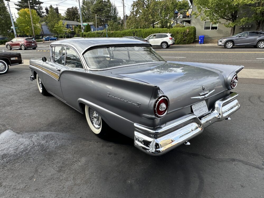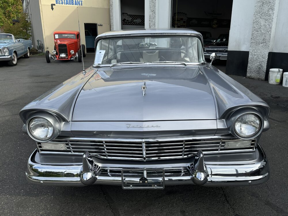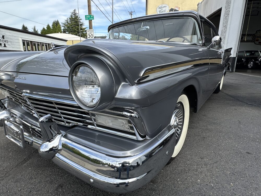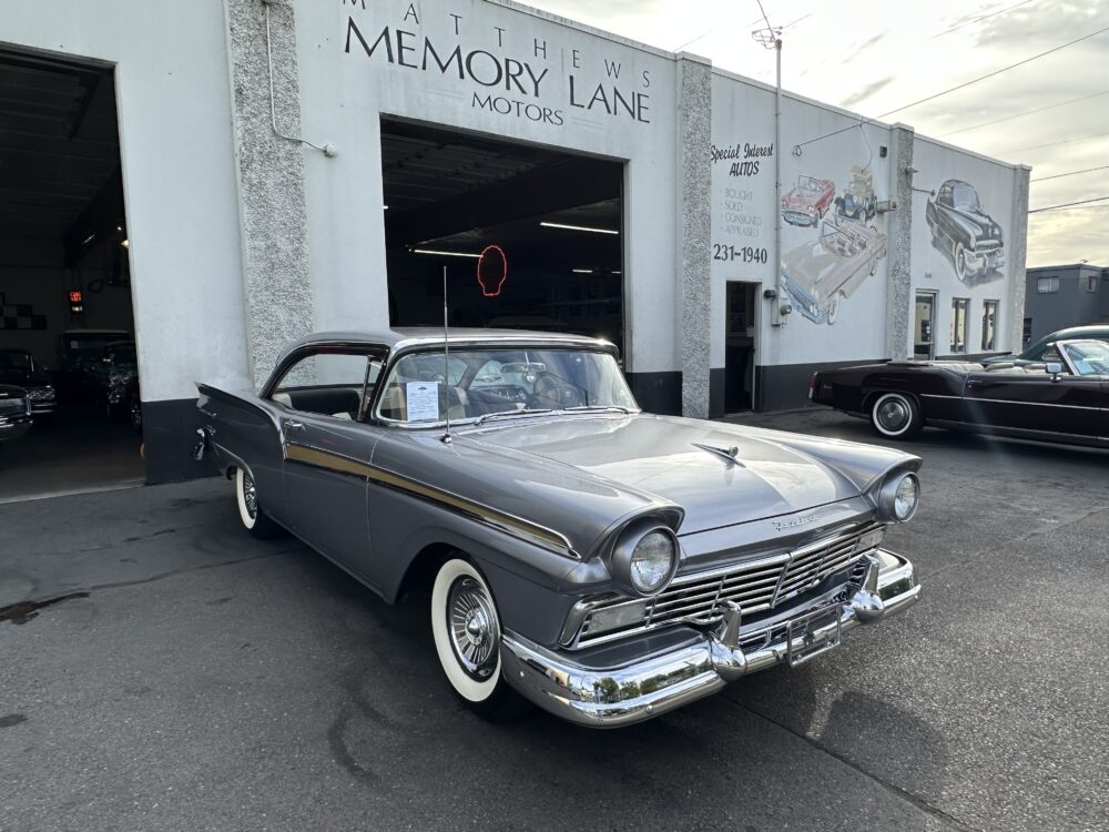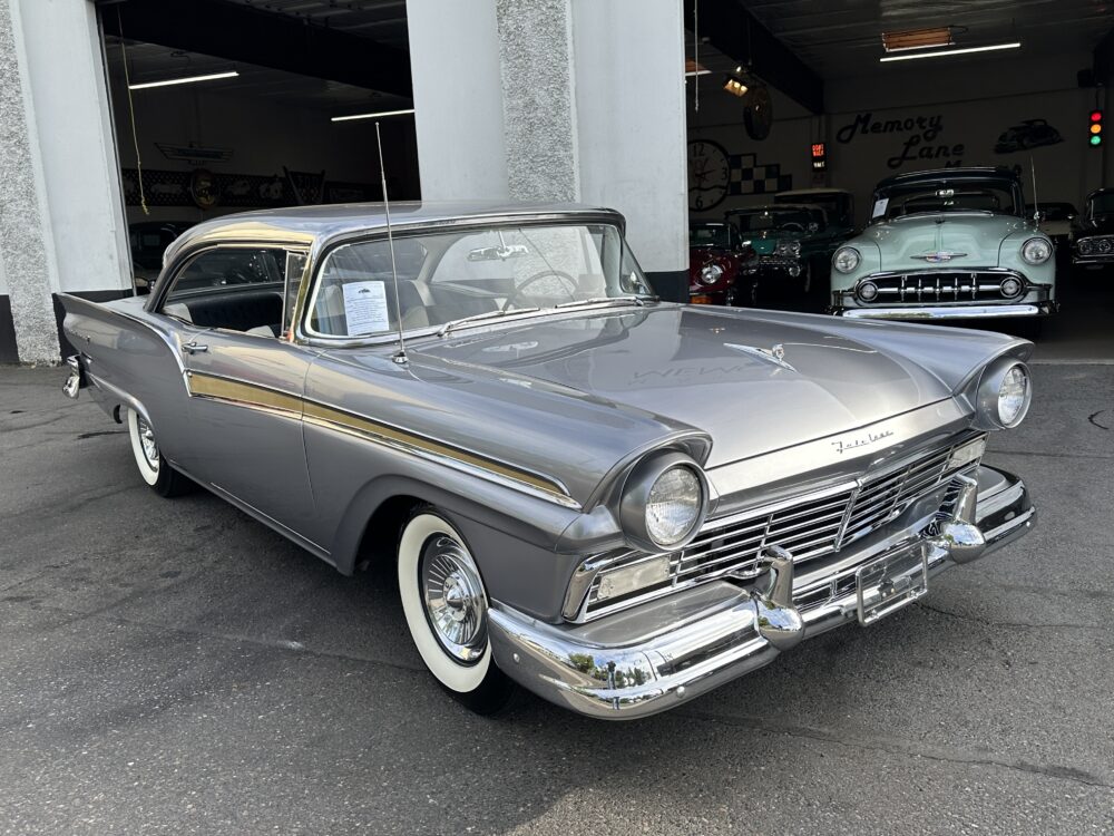 Take a good look at this stunning ’57 Ford Fairlane! It’s powered by a 312ci V8 engine paired to a Ford-O-Matic transmission and features power steering, power brakes and a Town and Country “Signal Seek” radio. It’s finished in the gorgeous color of Metallic Gray with excellent brightwork throughout, complimented by a two tone black and white decorative interior that looks amazing. This car glistens in the sun and cruises smoothly down the road!