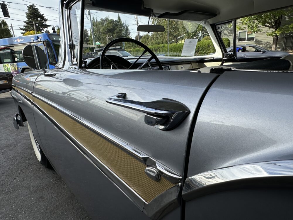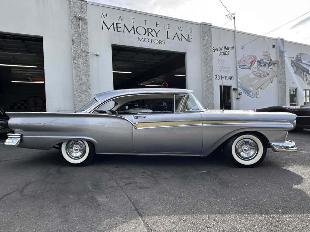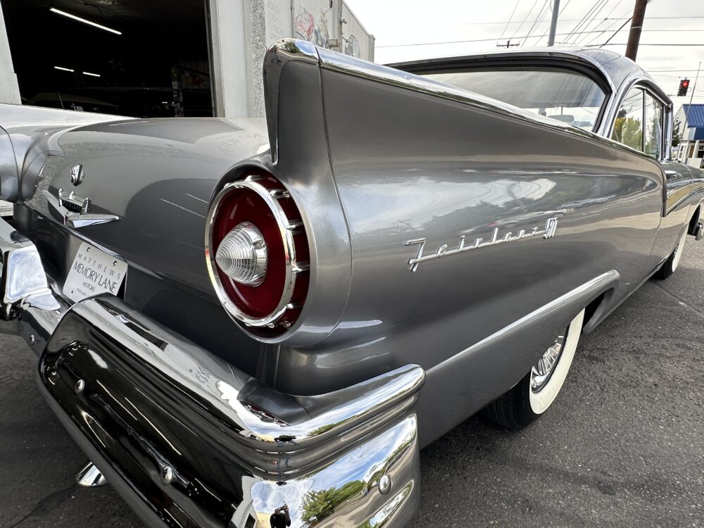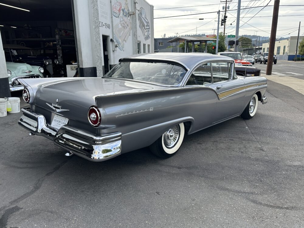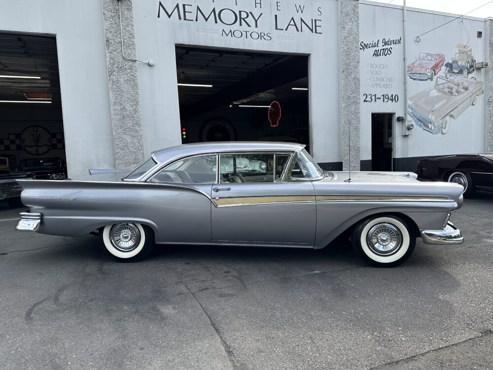 Take a good look at this stunning ’57 Ford Fairlane! It’s powered by a 312ci V8 engine paired to a Ford-O-Matic transmission and features power steering, power brakes and a Town and Country “Signal Seek” radio. It’s finished in the gorgeous color of Metallic Gray with excellent brightwork throughout, complimented by a two tone black and white decorative interior that looks amazing. This car glistens in the sun and cruises smoothly down the road!
