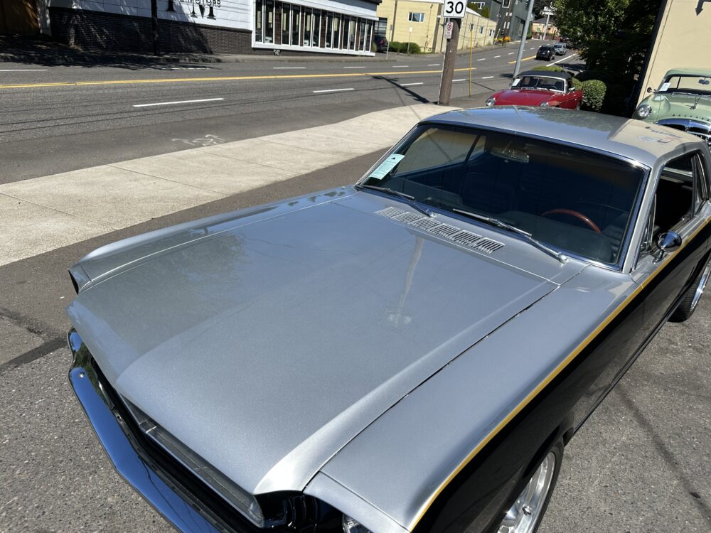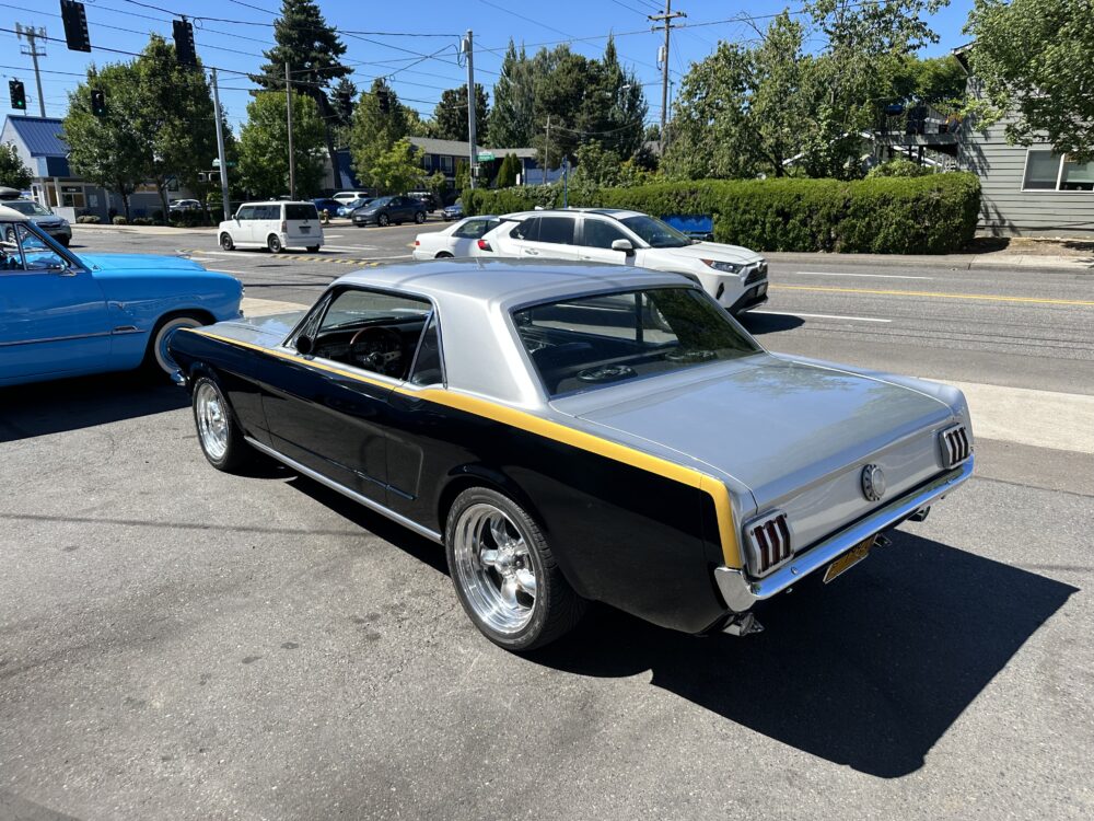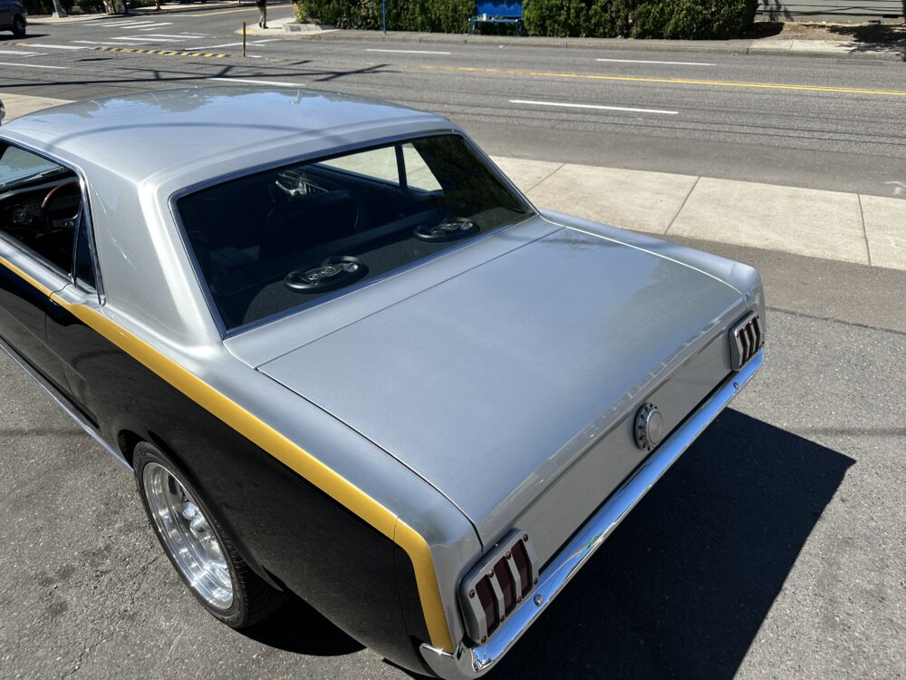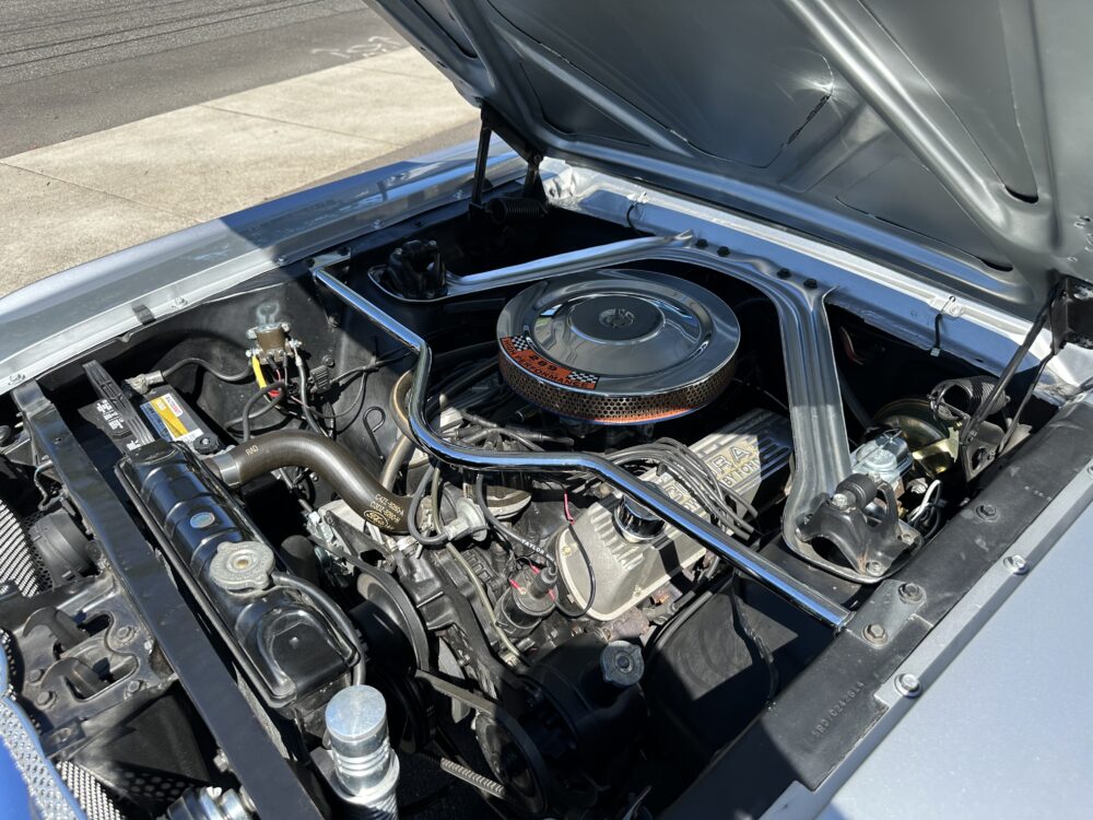 Check out this cool, custom Mustang! Shaved door handles with electric door poppers and interior remote trunk release. Powered by a 289ci small block V8 and a C4 automatic transmission. 17″ American Racing Torq Trust II wheels completes the custom look. Tri color paint scheme and mild exterior changes gives this Mustang a unique presence amongst other ponies in the stable. Nice sounding newer dual exhaust. Chrome air filter and Cobra valve covers are a nice touch under the hood. Newer stereo system with amp and sub. This is one very nicely put together Mustang, ready for your local cruise-in or the open road!