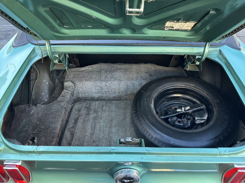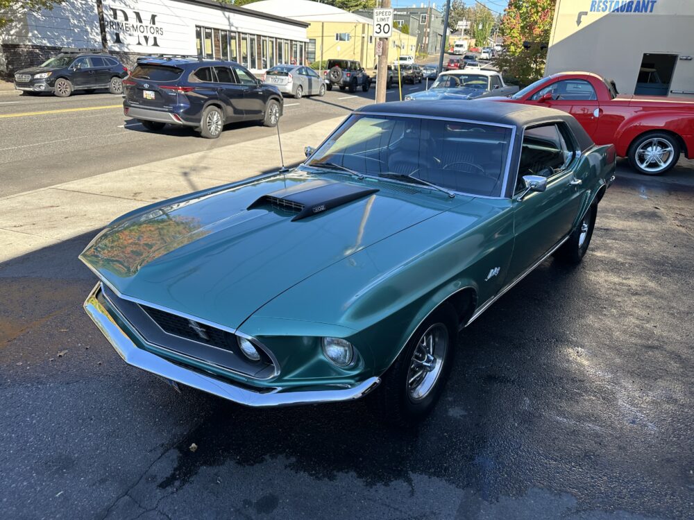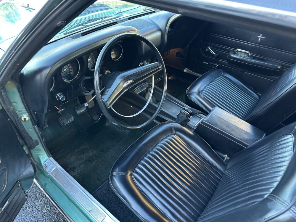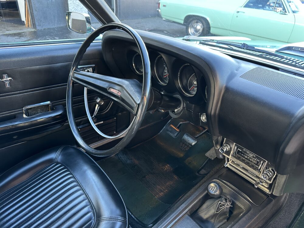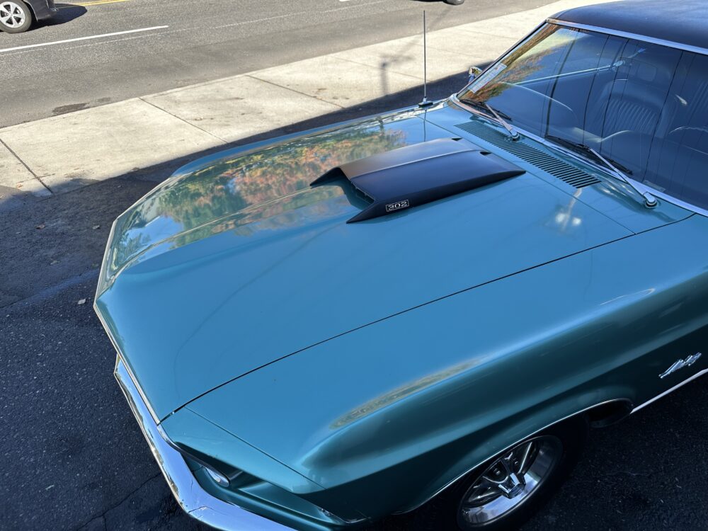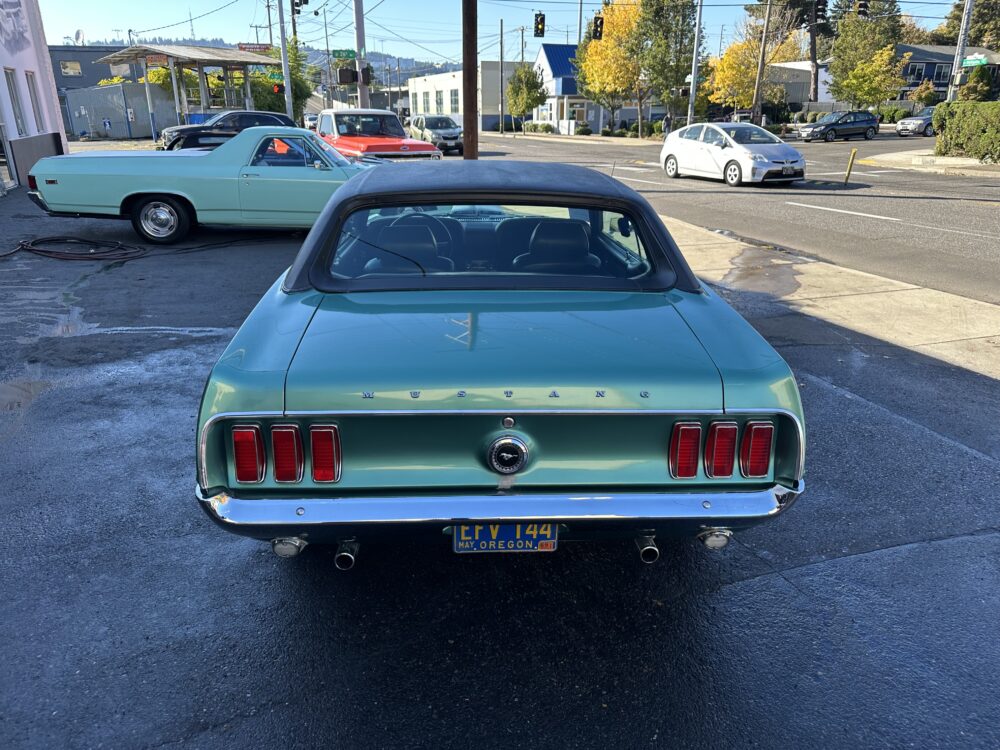 Factory 4 speed manual transmission! 302ci small block V8 engine. Local area car since new with only 4 owners. Partial original window sticker and paperwork for recent work completed. One time repaint in Silver Jade complemented by black vinyl upholstery and top. Steel style wheels with radial black wall tires. Good running and driving Mustang!