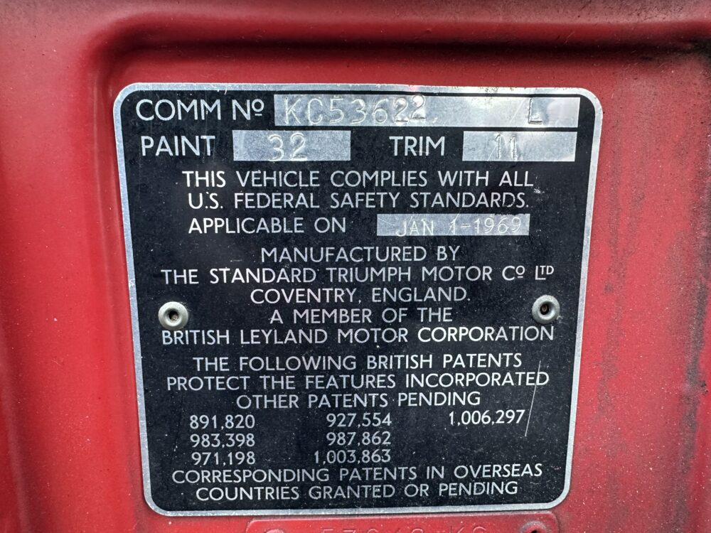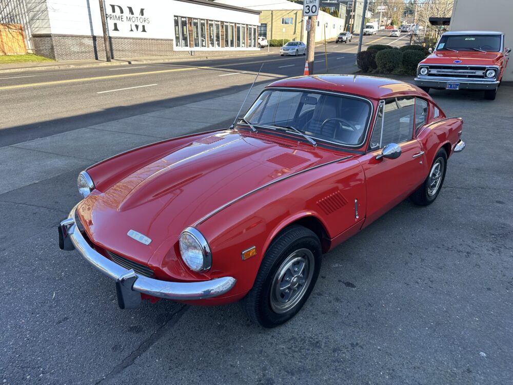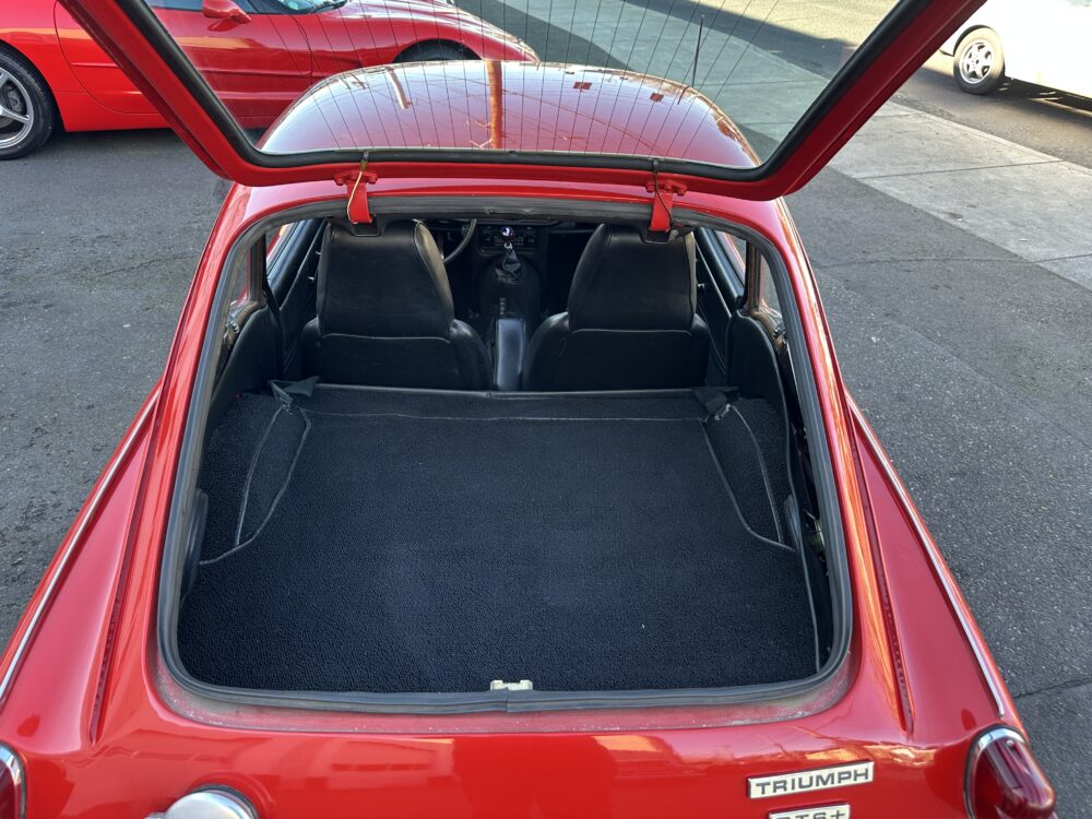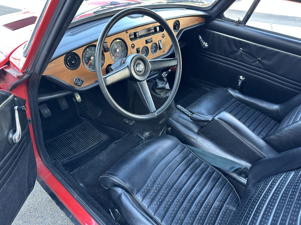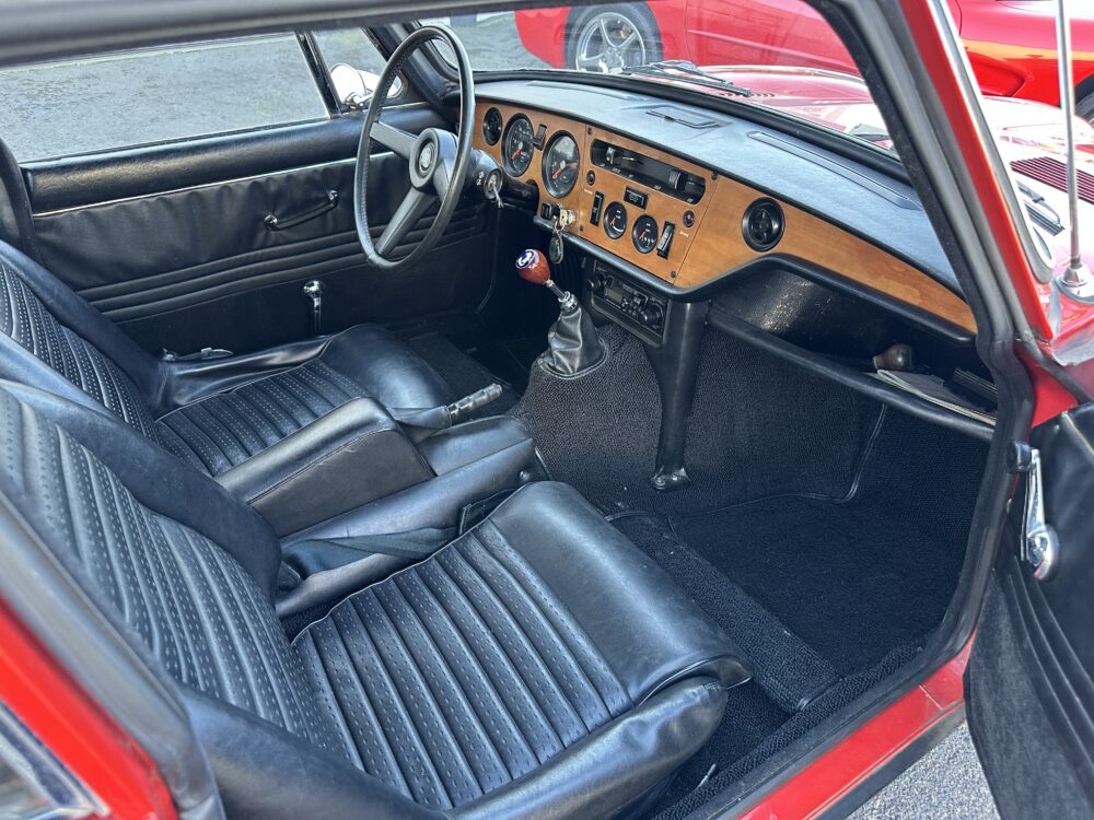Purchased from the previous owner who had owned this little Triumph since 1984! Nicely taken care of and ready for a new home! Powered by a peppy 1996cc inline 6 cylinder engine mated to a 4 speed manual transmission. Refinished in Signal Red over Black vinyl interior. “Anti-Dazzle” wood dash with Smiths gauges. Factory 13″ wheels with new tires! Get your kicks in this GT6!