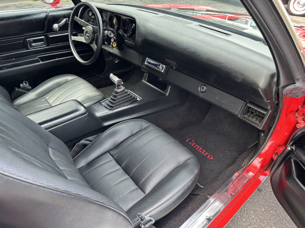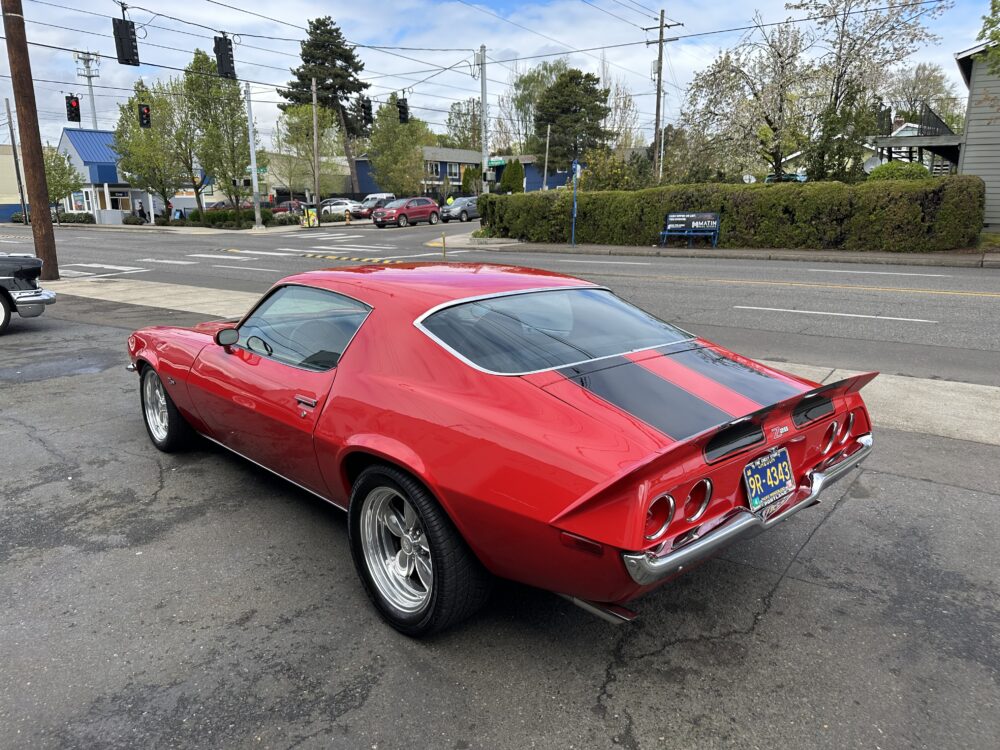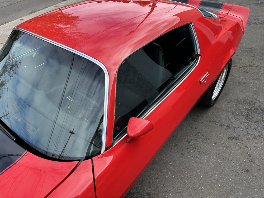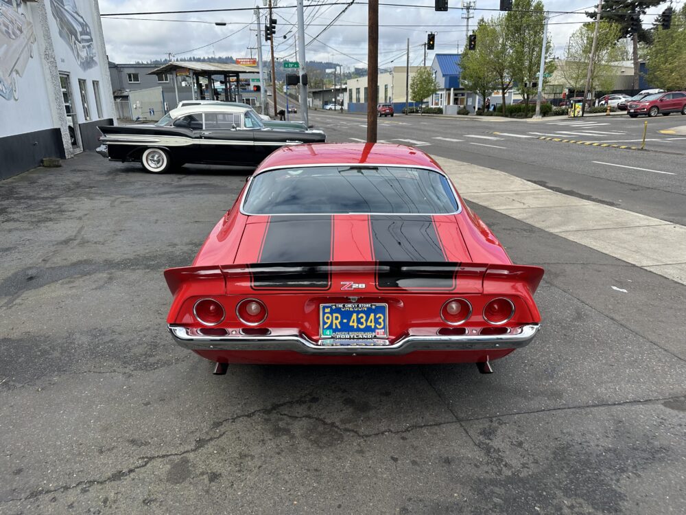 Check out this gorgeous, real Z28! Locally owned for the last 25 years! Powered by a 350ci small block Chevy V8 mated to an automatic transmission with a B&M shifter. Refinished in Red with black stripes giving this Camaro a great look. Factory style black interior with bucket seats. Power steering and Baer 4 wheel disc brakes. Sitting on 17″ American Racing Classic 200s. Awesome sound from the dual exhaust! Lots of paperwork and documentation included. Great looking, running and driving Z28!