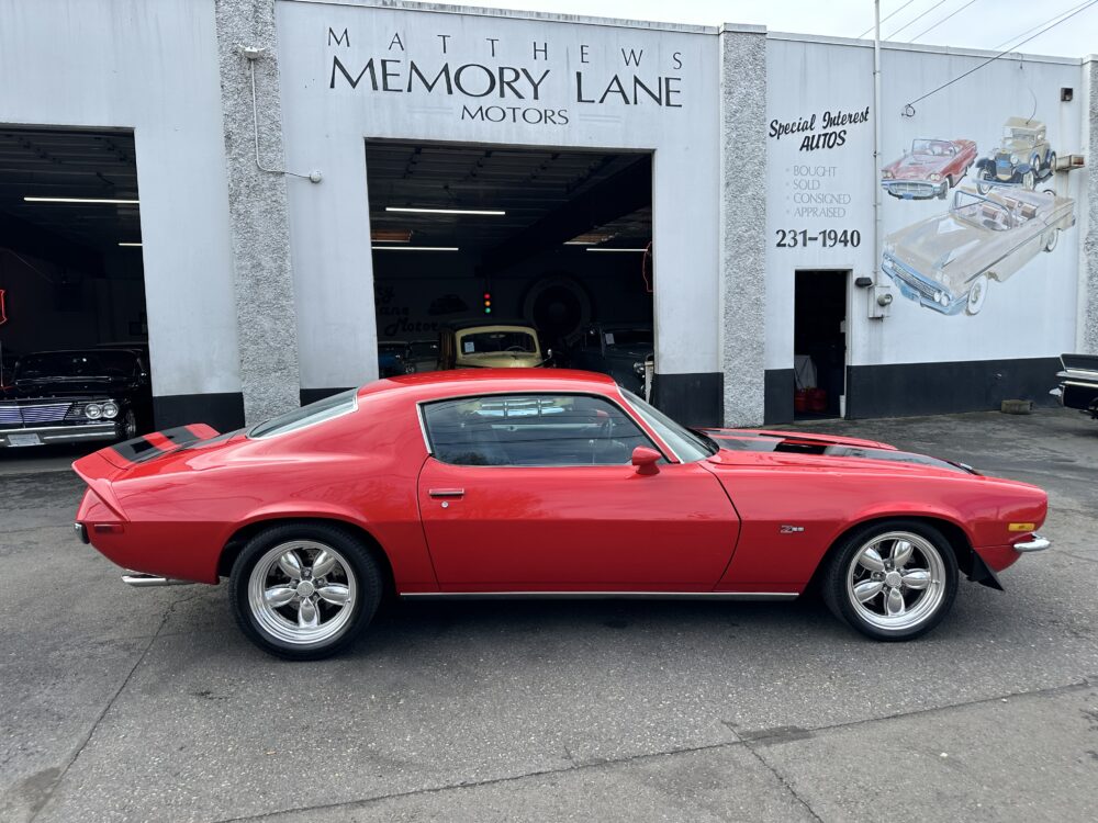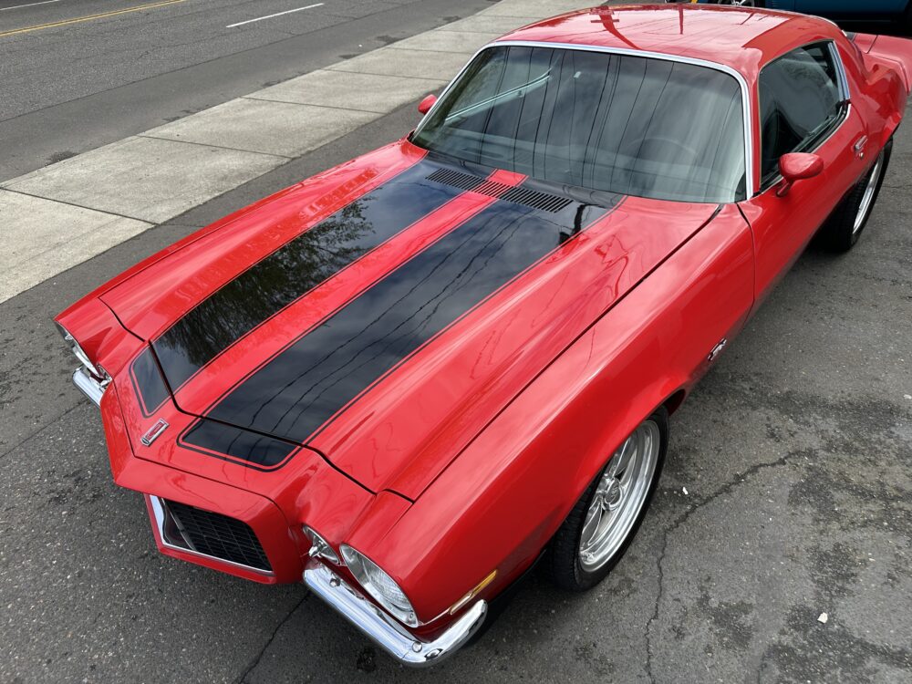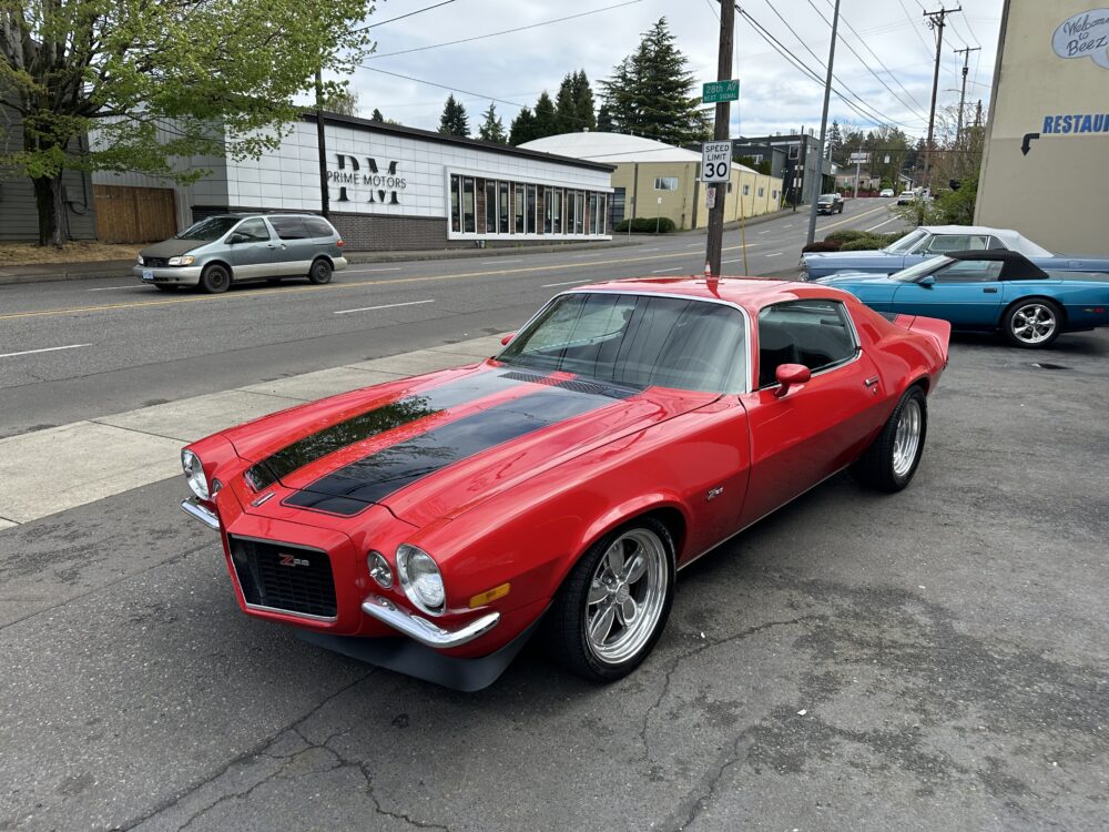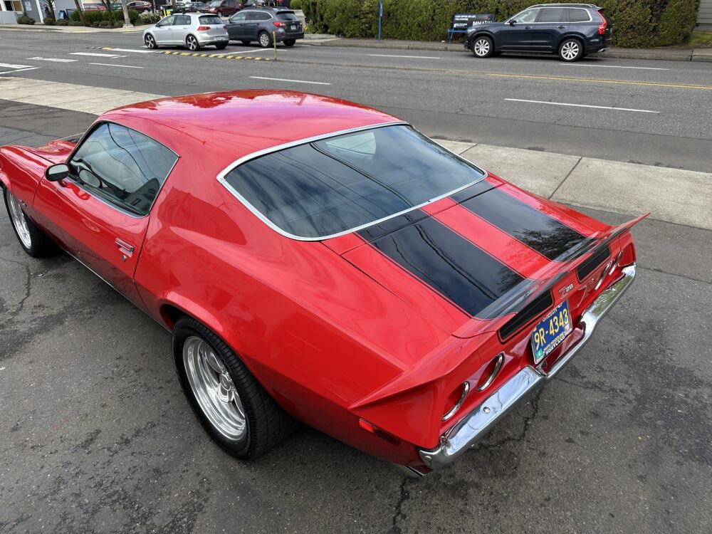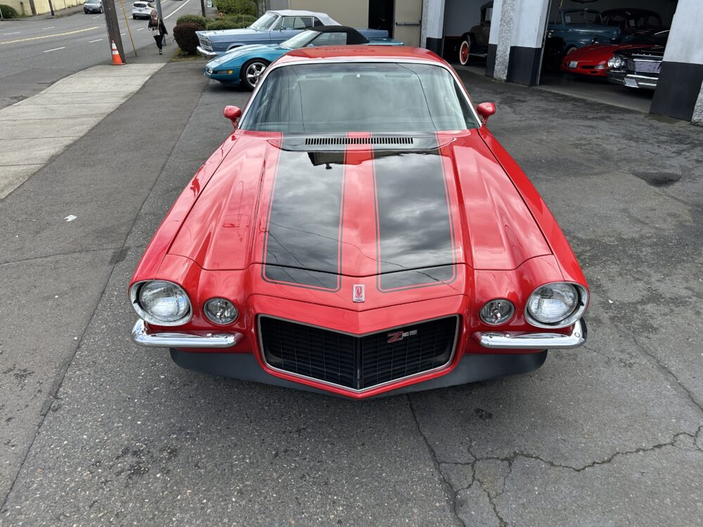 Check out this gorgeous, real Z28! Locally owned for the last 25 years! Powered by a 350ci small block Chevy V8 mated to an automatic transmission with a B&M shifter. Refinished in Red with black stripes giving this Camaro a great look. Factory style black interior with bucket seats. Power steering and Baer 4 wheel disc brakes. Sitting on 17″ American Racing Classic 200s. Awesome sound from the dual exhaust! Lots of paperwork and documentation included. Great looking, running and driving Z28!