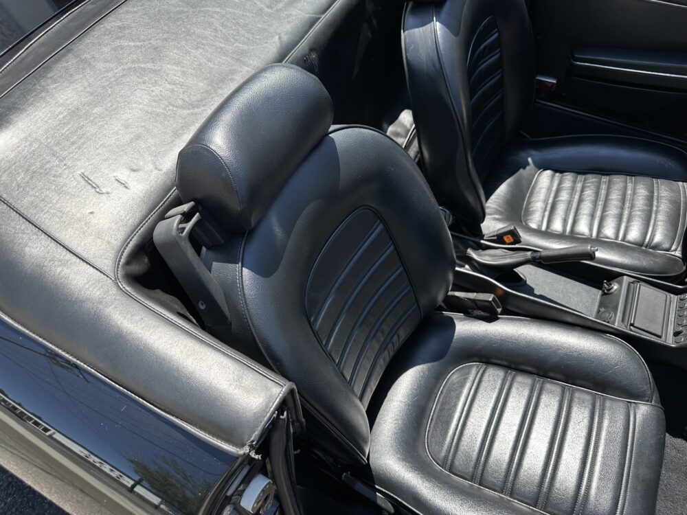 Here’s a fun little “top down” car to zip around town in! It’s powered by a 2.0L 4 cylinder fuel injected engine paired to a 5 speed manual transmission and it’s a whole lotta fun to drive! It’s a factory triple black car with excellent paint, very nice interior and a black vinyl soft top in wonderful condition. It’s sitting on a set of 15″ aluminum wheels wrapped in radial tires and checks a lot of boxes as a fantastic quality classic sports car.
