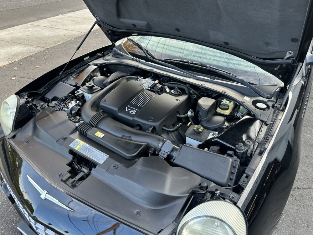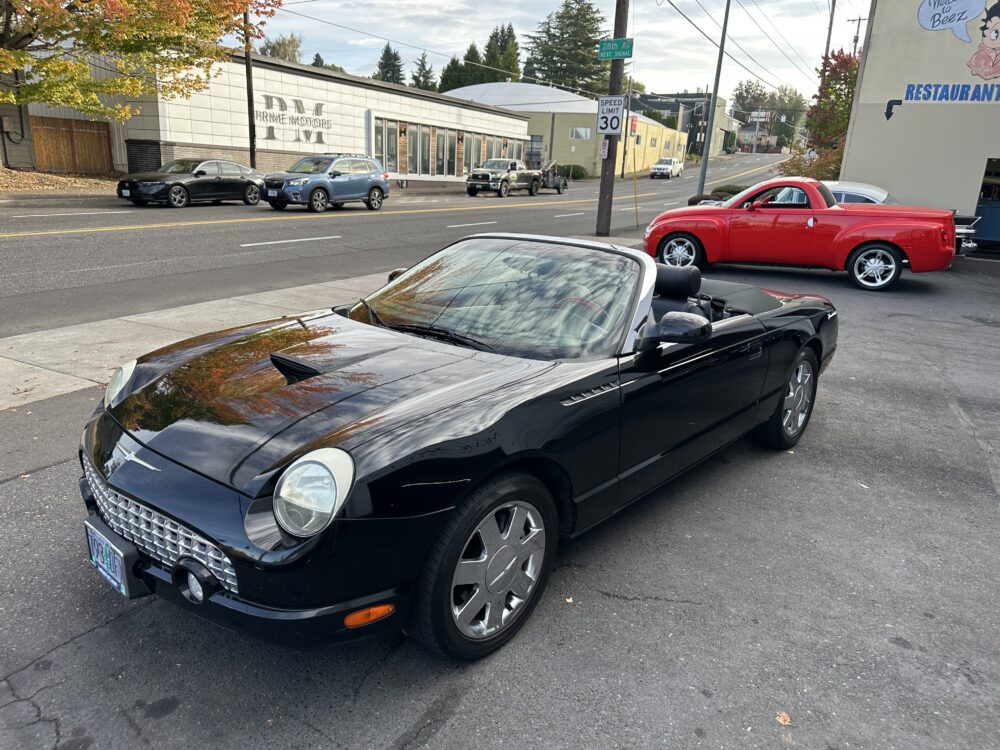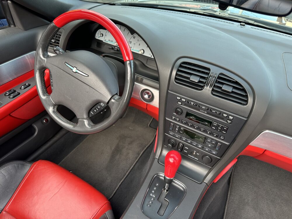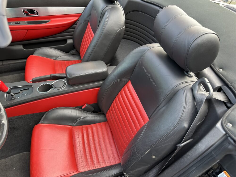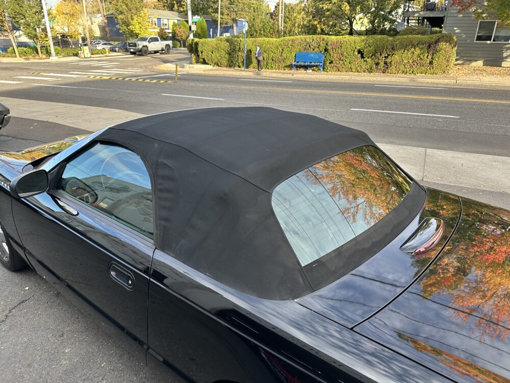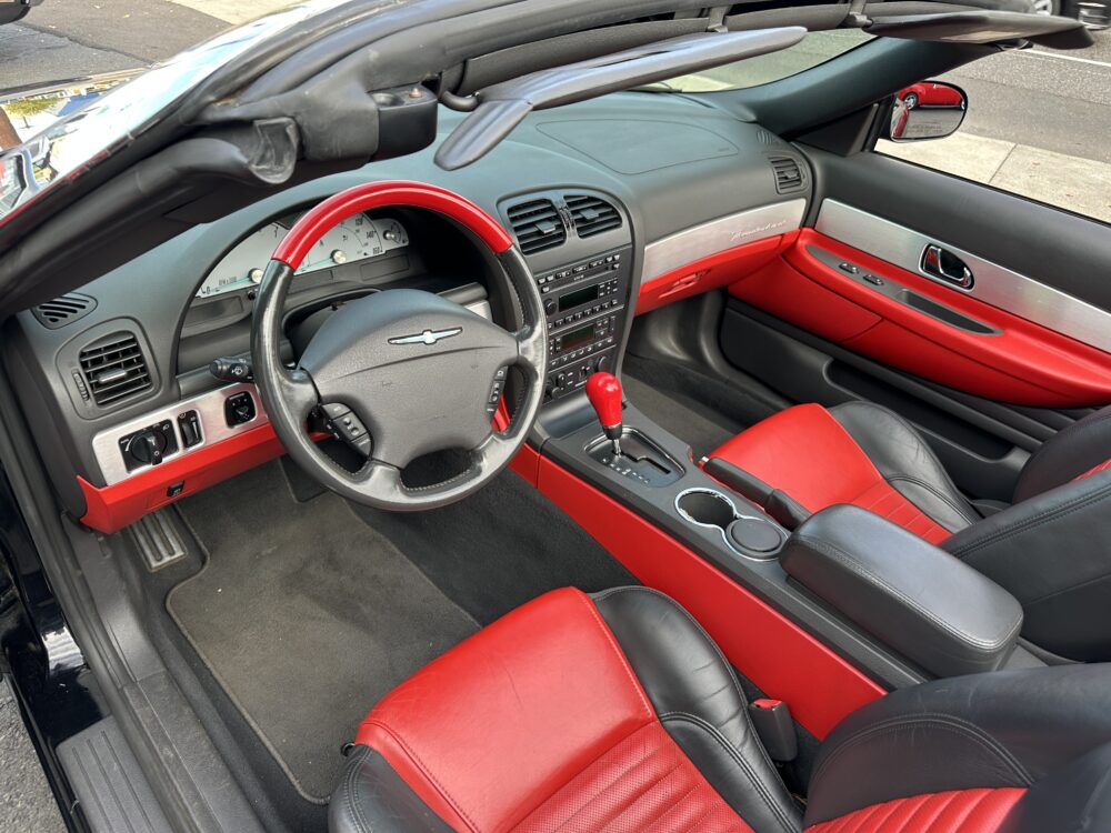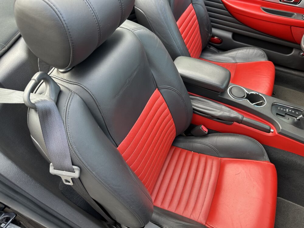Check out this turn-key, top down driver! Finished in Evening Black over Full Accent Red interior. Power actuated Black soft top and color matched removable hardtop. Power is sent to the rear wheels through a 252hp 3.9L V8 engine mated to a 5 speed automatic transmission. Power seat and power adjustable mirrors. 17″ 7 spoke chrome wheels wrapped in radial tires. Rare factory soft top boot parade cover included. The right color at the right price!