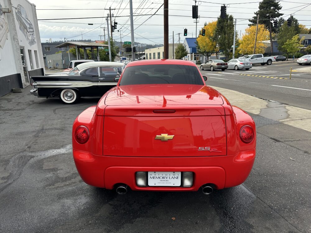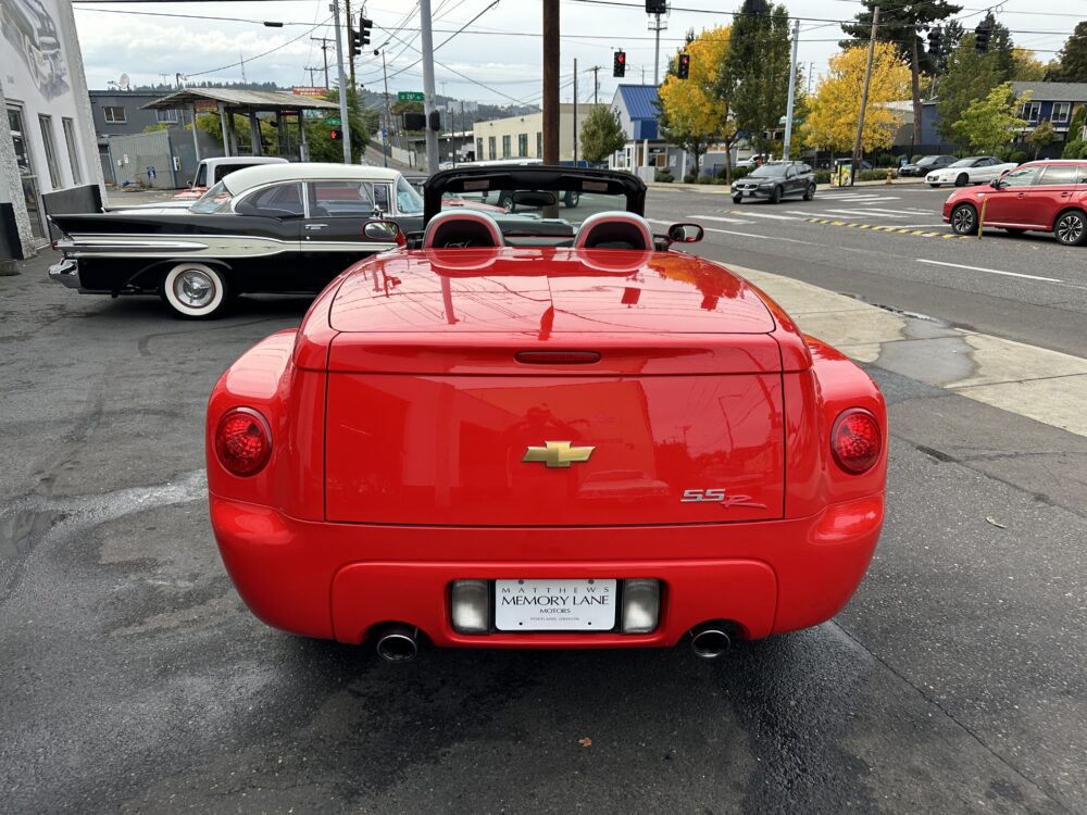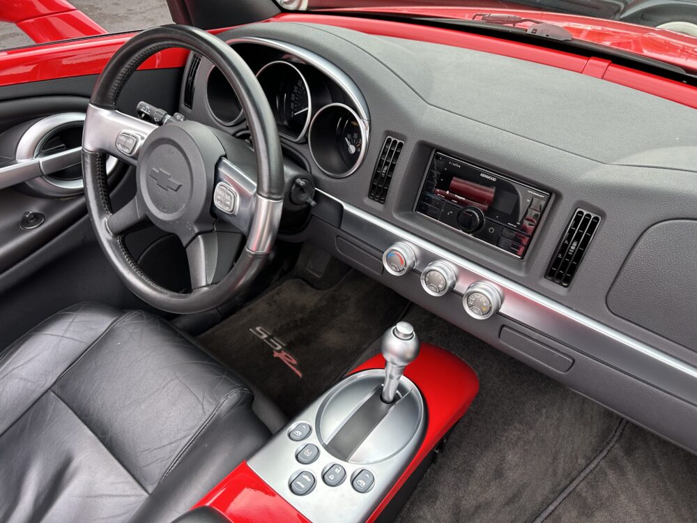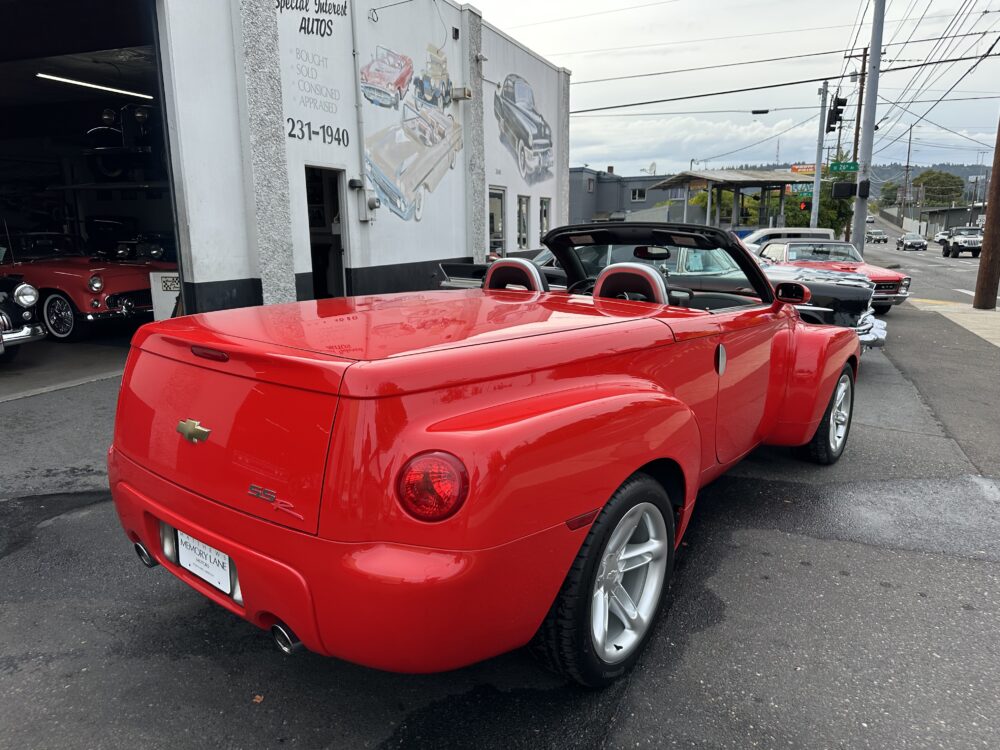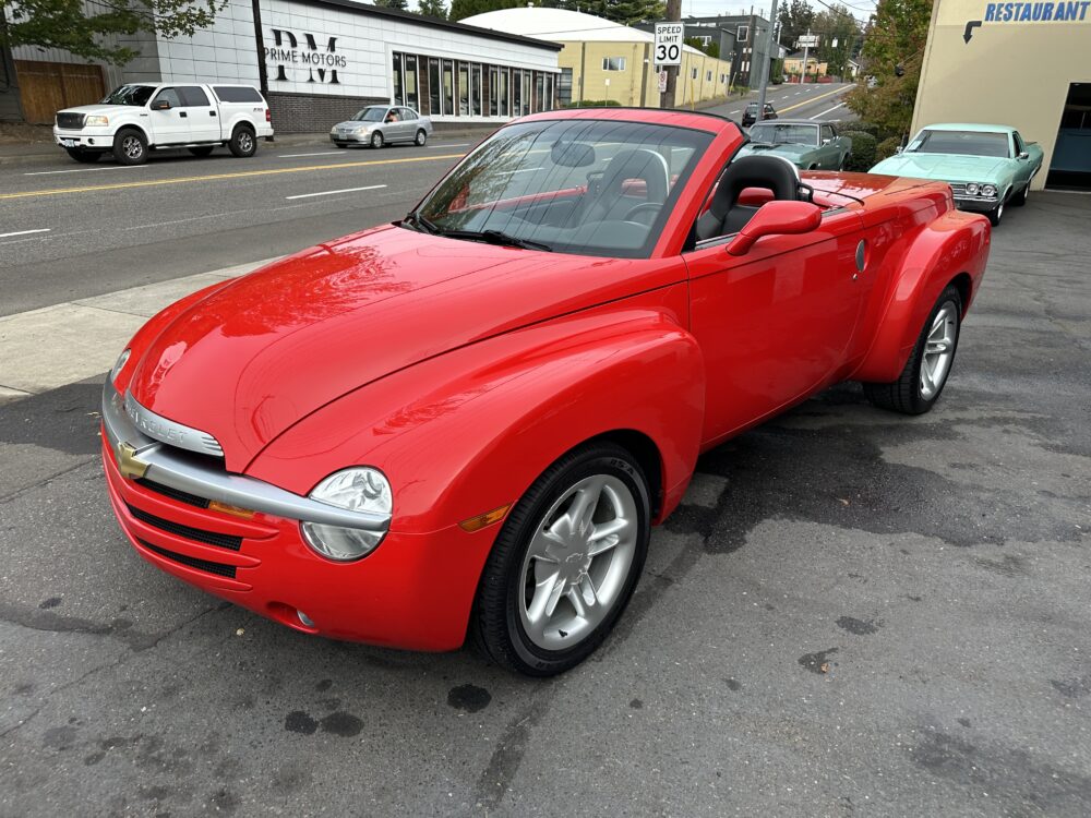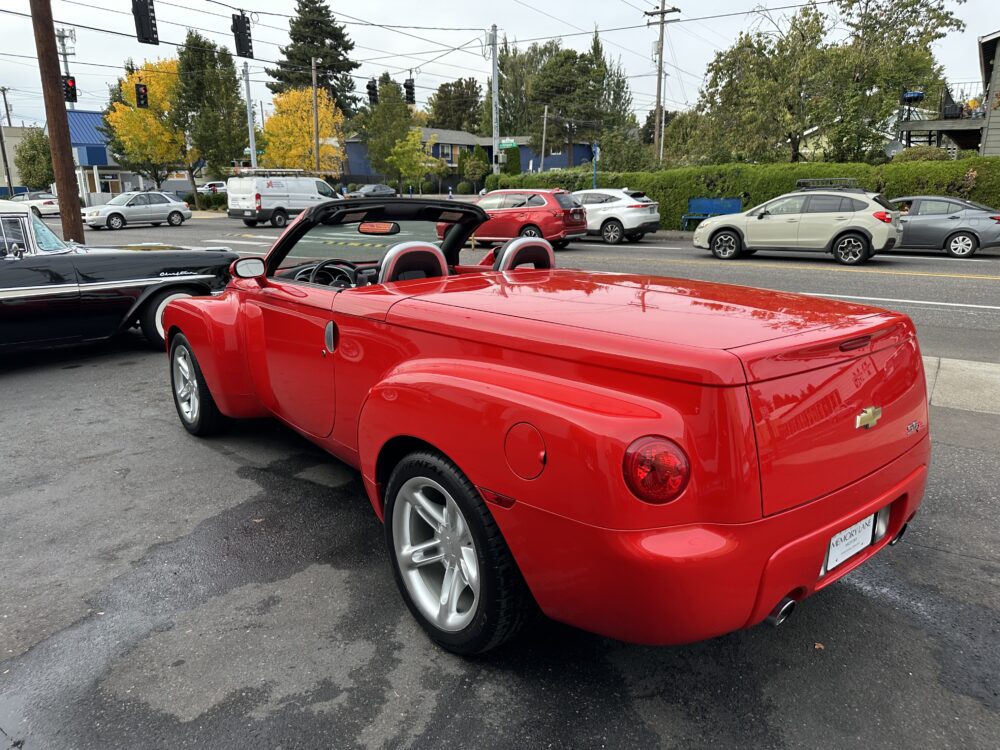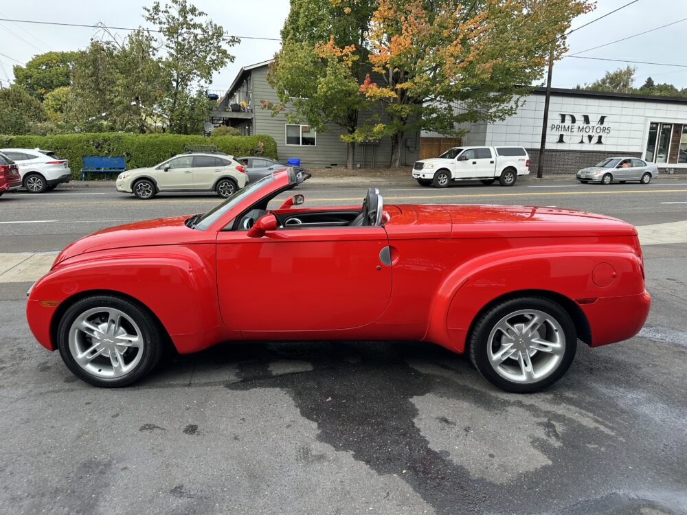 Check out this beautiful, low mile Redline Red Chevy SSR! It’s powered by a 5.3L V8 engine with an automatic transmission and features a laundry list of bells and whistles to include power windows, power mirrors, power steering, tilt wheel, power heated seats, 4 wheel disc brakes, power retractable top, and an aftermarket stereo with bluetooth connectivity just to name a few! This fun little Super Sport Roadster (SSR) sits on the factory 20″ wheels and the Redline Red exterior is complimented by the Black leather interior. The bed is covered with the hard color matched tonneau and finished in black carpet with the wood grain trim. These little SSR’s are gaining popularity and it’s no wonder when you consider they’re one of the only vehicles we know that’s found the unique blend with the utility of a pickup, the style of a street rod and the fun of a convertible!