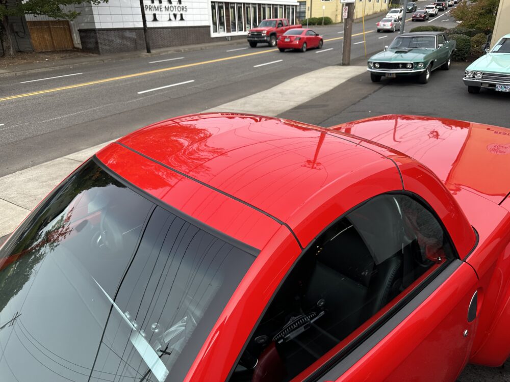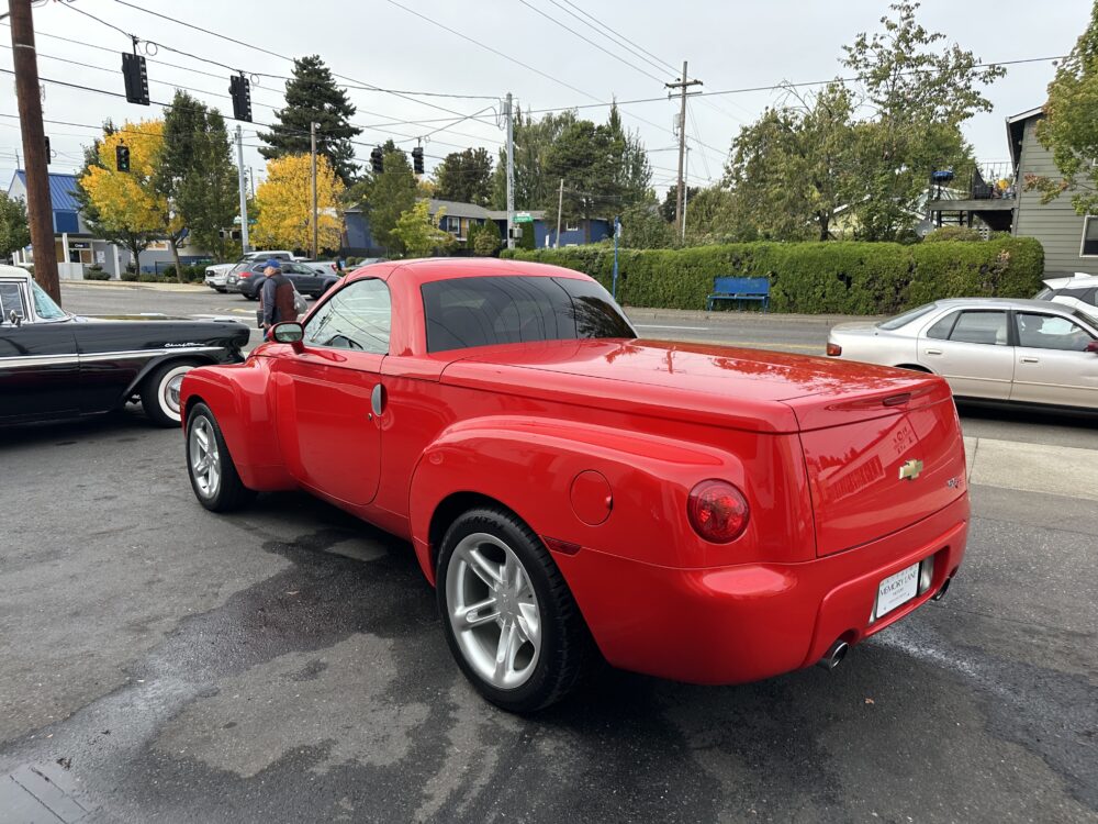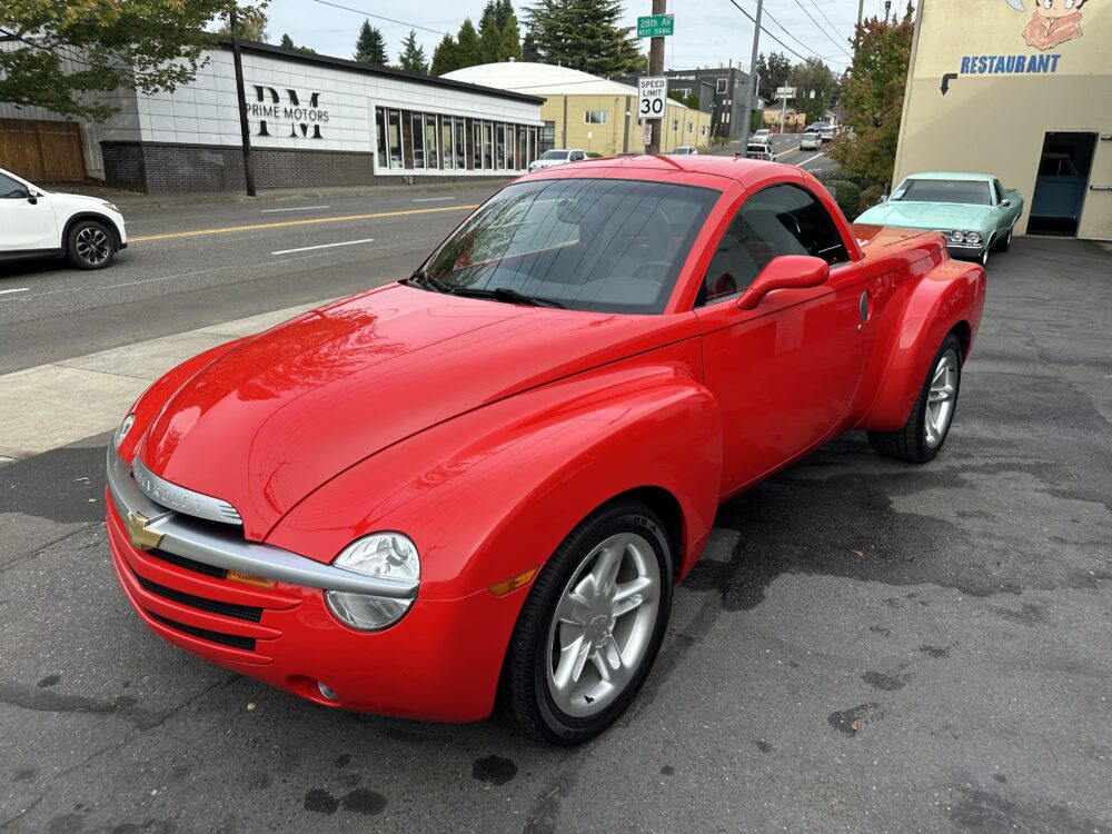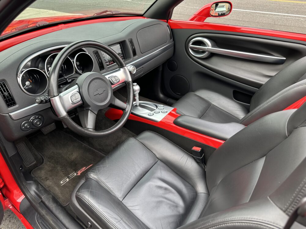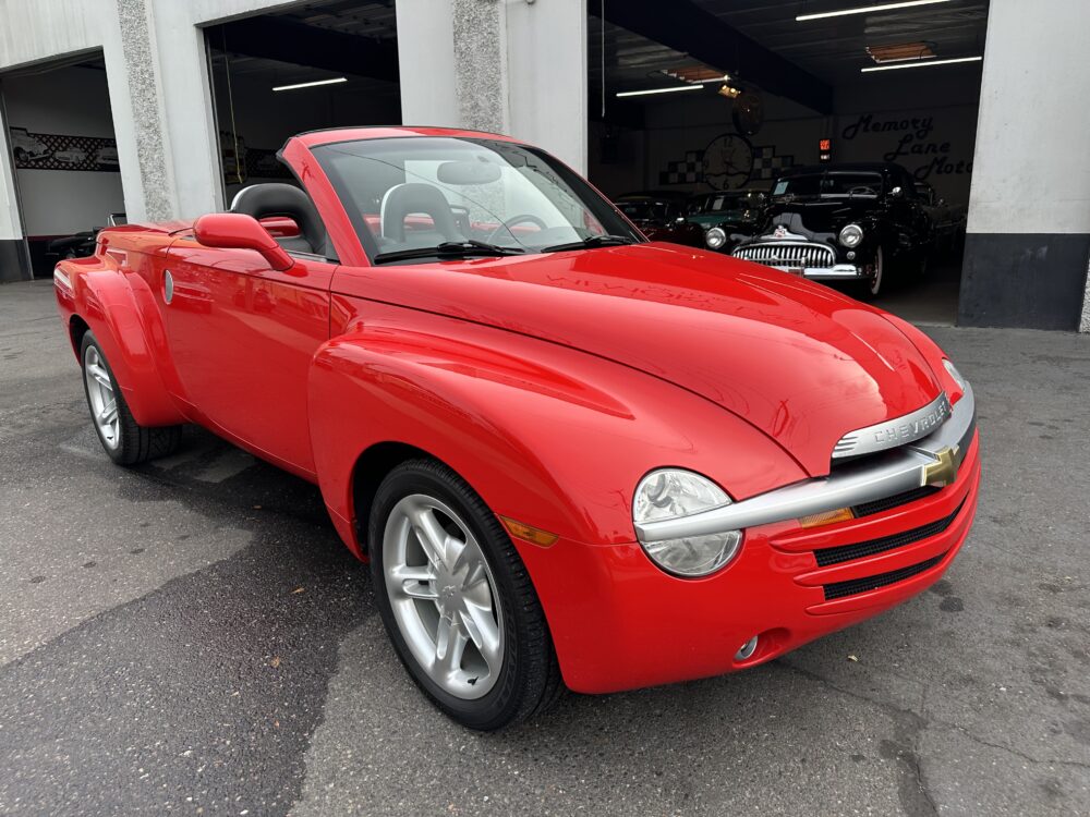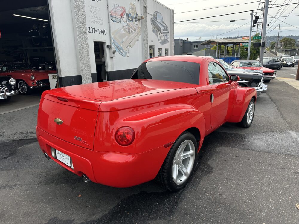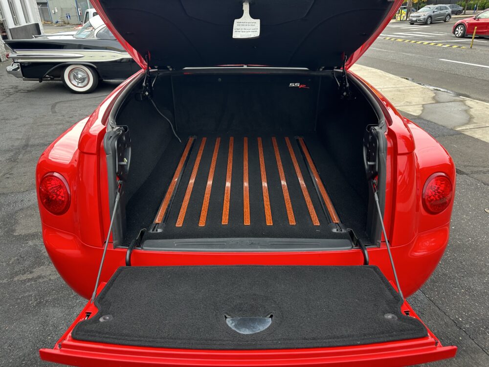 Check out this beautiful, low mile Redline Red Chevy SSR! It’s powered by a 5.3L V8 engine with an automatic transmission and features a laundry list of bells and whistles to include power windows, power mirrors, power steering, tilt wheel, power heated seats, 4 wheel disc brakes, power retractable top, and an aftermarket stereo with bluetooth connectivity just to name a few! This fun little Super Sport Roadster (SSR) sits on the factory 20″ wheels and the Redline Red exterior is complimented by the Black leather interior. The bed is covered with the hard color matched tonneau and finished in black carpet with the wood grain trim. These little SSR’s are gaining popularity and it’s no wonder when you consider they’re one of the only vehicles we know that’s found the unique blend with the utility of a pickup, the style of a street rod and the fun of a convertible!